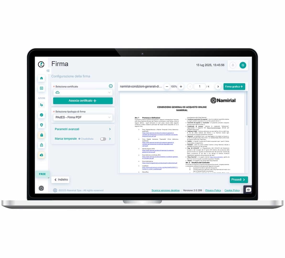 Le principali funzionalità di Namirial Sign sono disponibili gratuitamente. Se vuoi provare la versione avanzata passa al piano Premium quando vuoi.
